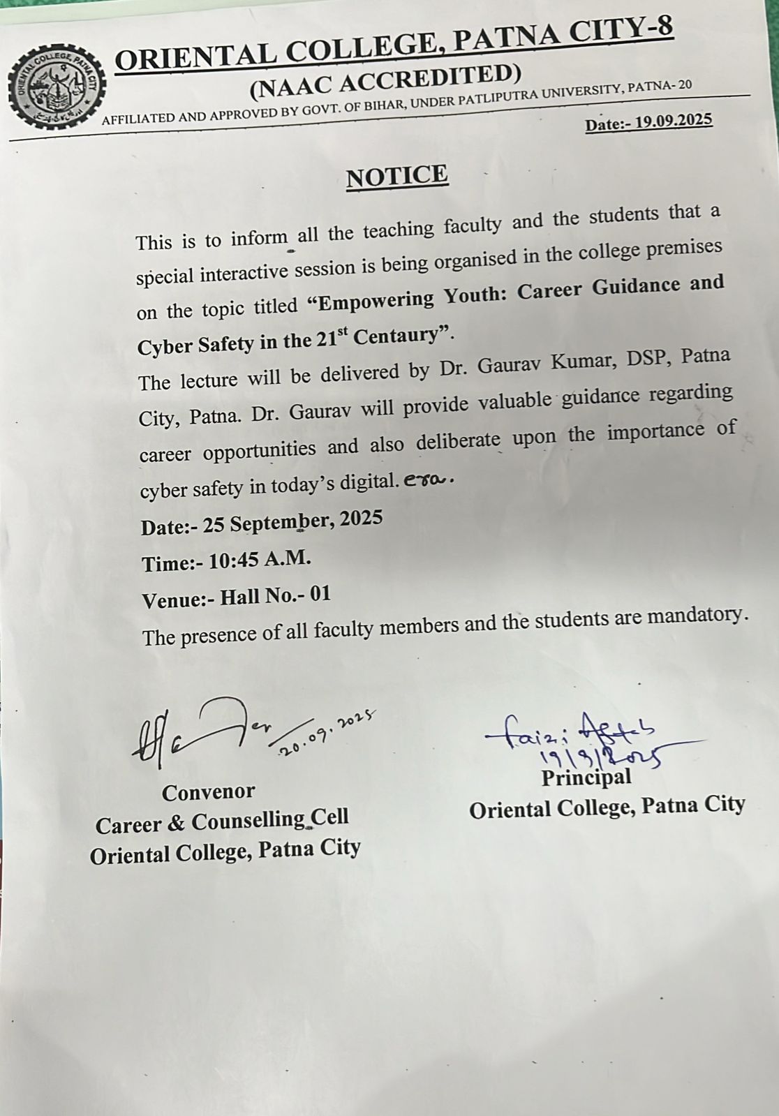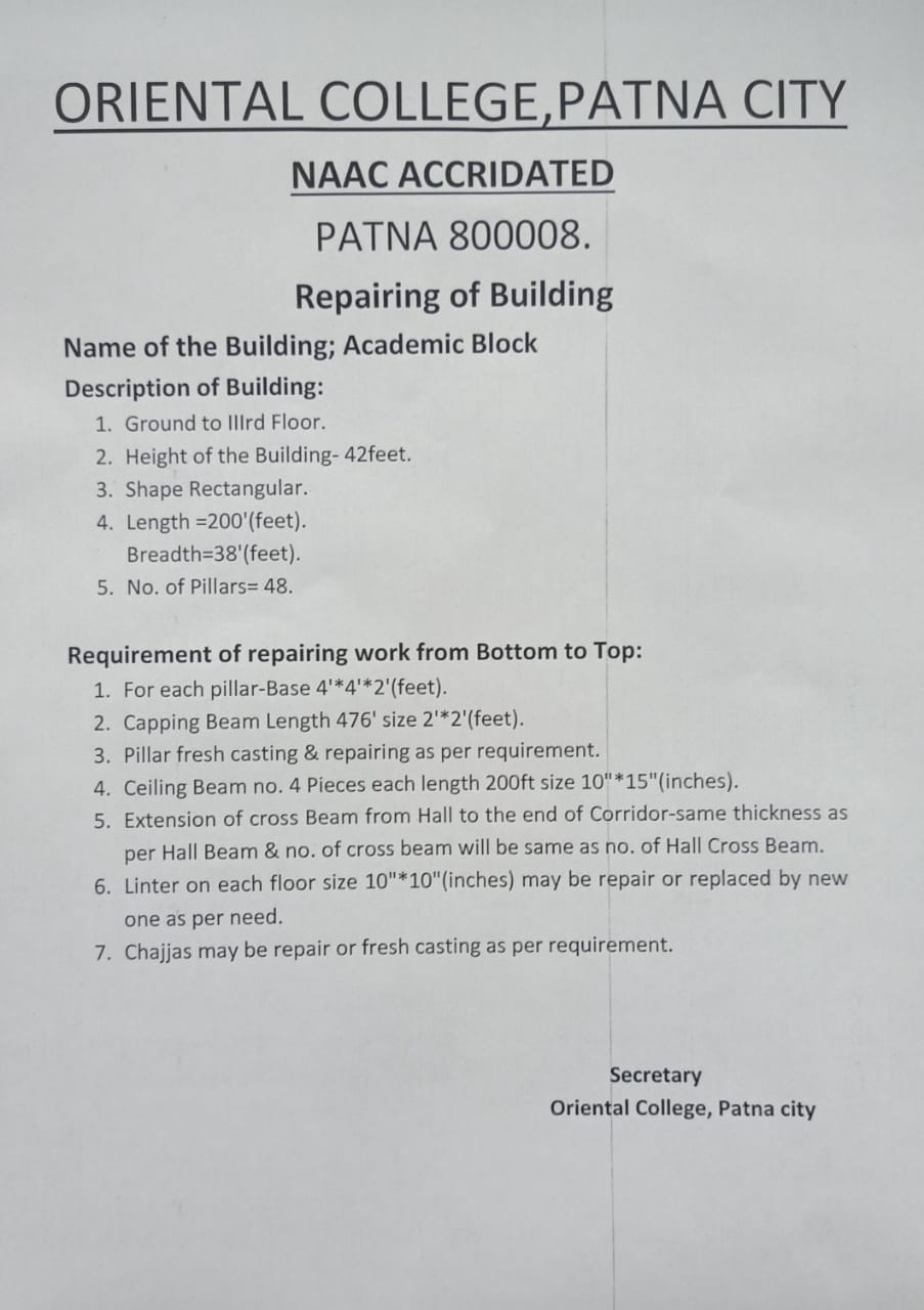 Read MoreOriental College was established on 21st April, 1964 with the aim of providing higher education on par with standard. It persistently seeks and adopts innovative methods to improve the quality of higher education on a consistent basis. Its parent Body the Mohammadan Education Committee, Patna was founded in 1882. It also manages a High school, the M.A.A. School which was established in 1884.
