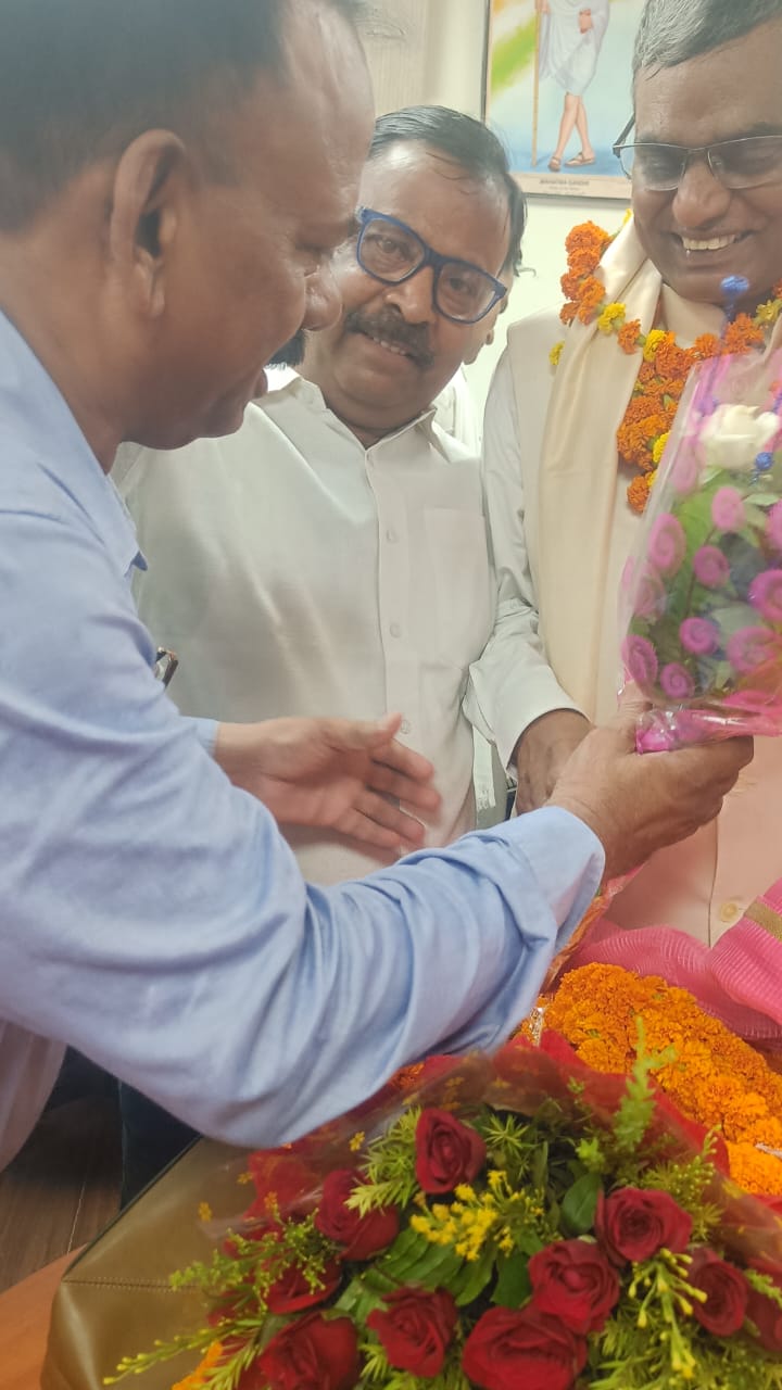 Principal of Oriental College, Patna City, Dr. Faizi Aftab, Extends a Warm Welcome to Prof. Upendra Prasad Singh, the New Vice-Chancellor of Patliputra University, Patna on dated:- 04.07.2025 in the V.C. Chamber